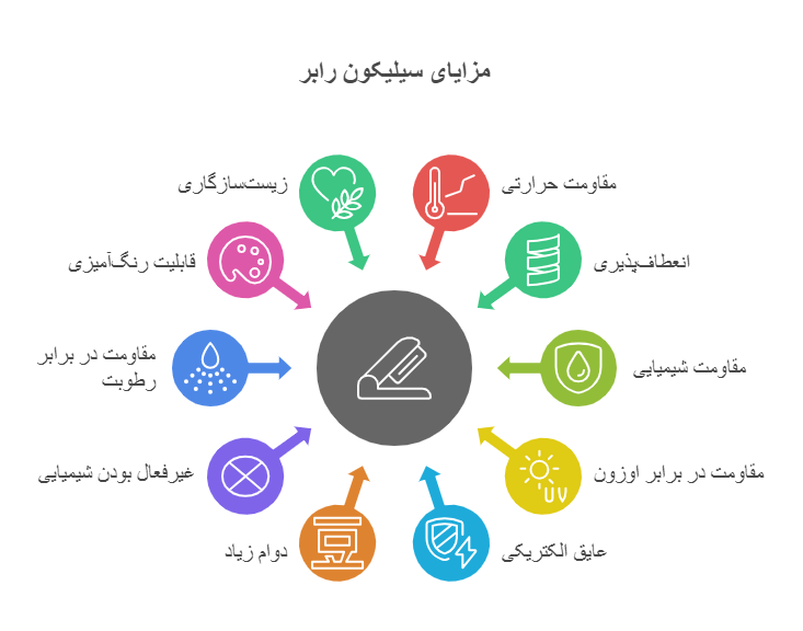| مقاومت حرارتی | تحمل دما از -60°C تا +250°C بدون تغییر خواص | ایدهآل برای صنایع خودروسازی، پزشکی و لوازم پخت |